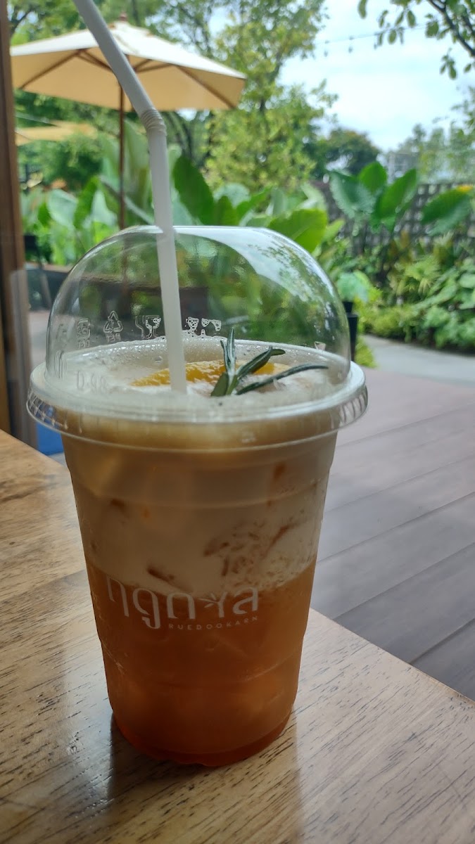 The place is very beautiful. The restaurant is separated from the cafe, but they both look great. The price is as high as its appearance; however, the food and beverages are quite nice. I wanted blueberry lemon cheesecake for dessert, but unfortunately, it was sold out. There are two things I don't like about this place: there's no price on the drink menu, so we didn't know that smoothies are extremely expensive, we got charged 150฿ for just one simple mango with pineapple smoothie. Moreover, my mother ordered hot tea, and they mistakenly gave her the cold one. There's a wide parking lot, lots of tables, and many wonderful photo spots. It's not crowded, but people keep coming every single hour.